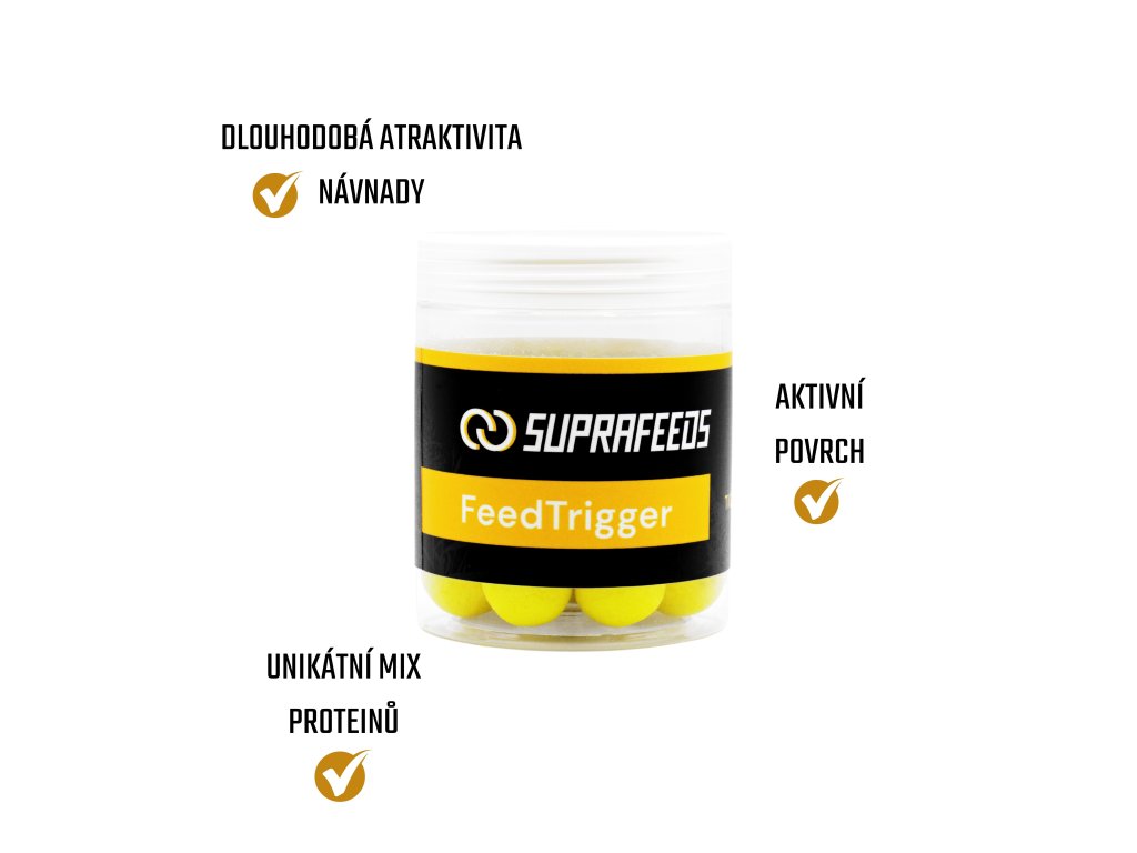FEED TRIGGER Tiger Nut Banana obsahuje vysoký podíl mléčných a rostlinných proteinů. Houbovitá struktura plovoucí nástrahy skvěle vstřebává dipy a udrží tak v sobě velké množství tekutých vysoce lákavých atraktorů pro kapry. Garantuje rovněž vysoký plovoucí výtlak a to po dobu minimálně 24 hodin.