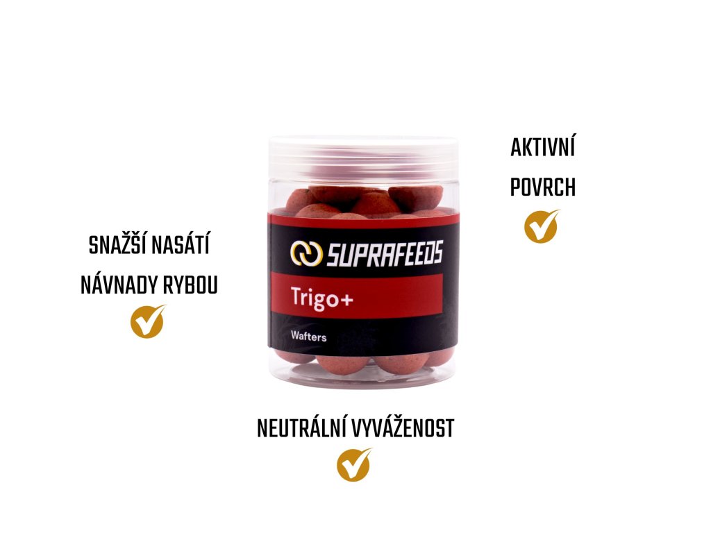 TRIGO+ wafters jsou odlehčenou verzí potápivého boilies řady TRIGO+. Hravě si poradí s bahnitým dnem, na které po náhozu jen jemně dopadnou.